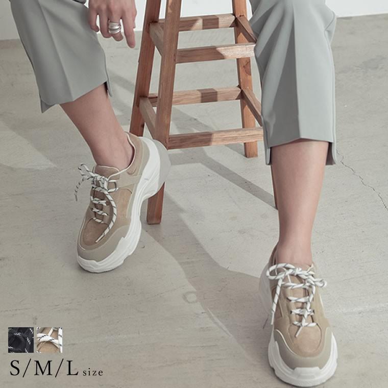 切り替え配色スニーカー I2174 レディース シューズ スニーカー 厚底 パイソン ラメ 厚底スニーカー 白 黒 おしゃれ きれいめ 大人可愛い グリッター レースアップ フラットソール ベージュ ピンク ガーリー かわいい神戸レタス